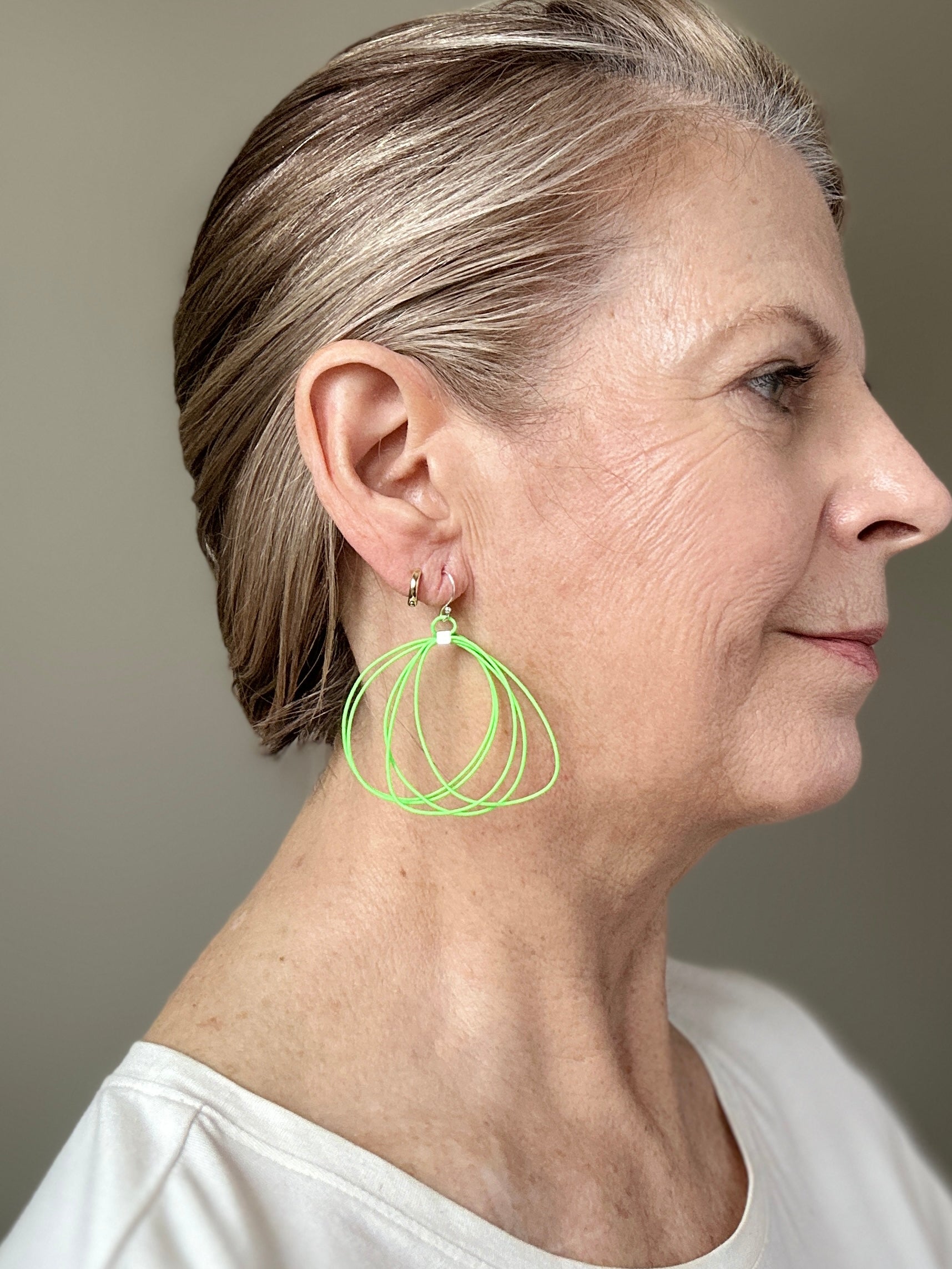 Incredibly light weight sculptural cord earrings. The layer can be pulled apart and manipulated into different shapes. Sterling silver findings 2” x 1 1/4”